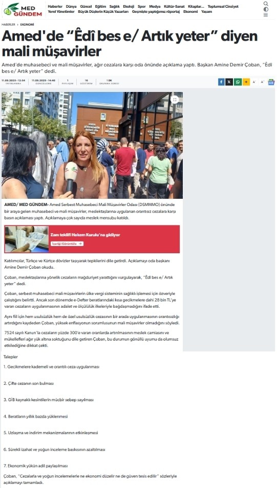 Amed'de “Êdî bes e/ Artık yeter” diyen mali müşavirler (kaynak: www.medgundem.com)