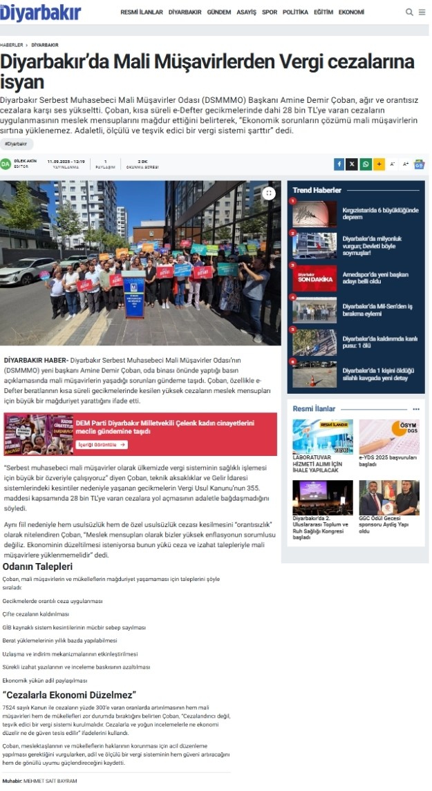 Diyarbakır’da Mali Müşavirlerden Vergi cezalarına isyan (kaynak:www.ozdiyarbakirgazetesi.com)