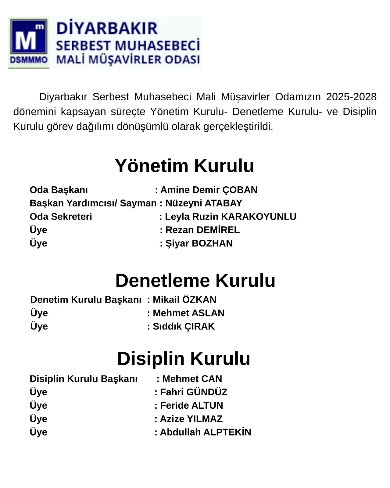 11 MAYIS 2025 TARİHİNDE GERÇEKLEŞEN ODA SEÇİMLERİNDE YÖNETİM KURULU GÖREV DAĞILIMI YAPILDI.